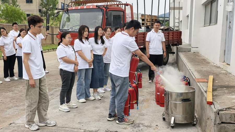 安全管理是訓練營的重要學習內(nèi)容。健康安全環(huán)保部的安全員系統(tǒng)講解危化品使用、消防安全法規(guī)、應急處置流程等內(nèi)容,通過典型案例分析強化風險防范意識。實操環(huán)節(jié)中,6個小組輪流進入模擬消防場地,在教官指導下完成滅火器使用全流程。